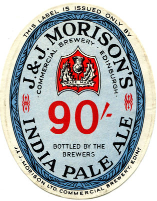 J & J Morison's Brewery, Edinburgh, 90/-, India Pale Ale very large beer label