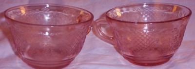 Title (ebay affiliate link): 2 Pink Cups Normandie Federal Glass Co Depression 1930s