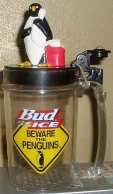 Title (ebay affiliate link): Budweiser Beer PENGUIN Plastic Cup Stein Mug BUD ICE Beware the Penguins