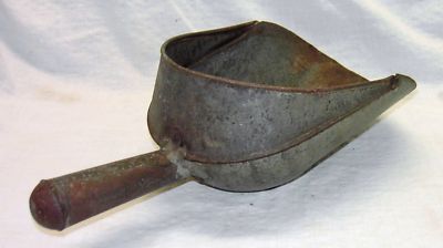 primitve antique metal seed feed grain scoup scoups shabby farm utensil
