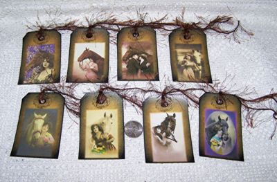 VINTAGE PRIMITIVE EQUESTRIAN HORSE GIFT HANG TAGS