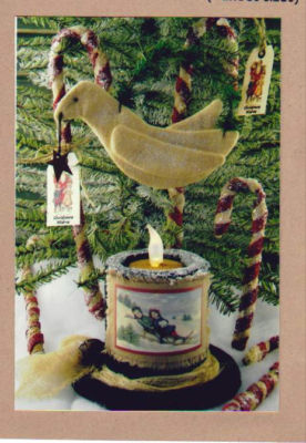 Primitive Christmas Dove, Candy Cane, Top Hat Tree ornaments Pattern