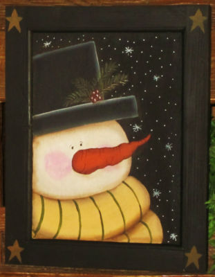 *~*PRIMITIVE*~* HP FOLK ART SNOWMEN ~ WINTER ~ DOOR PANEL