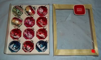 Title (ebay affiliate link): BOX OF 12 VINTAGE SHINY BRITE STENCILED CHRISTMAS ORNAMENT
