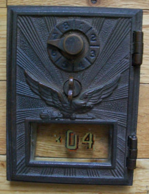 Title (ebay affiliate link): US HEAVY BRASS VINTAGE POST OFFICE BOX DOOR w/ GLASS & EAGLE #04