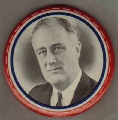 Title (ebay affiliate link): FDR ROOSEVELT 3.5 inch Photo Pin Red design