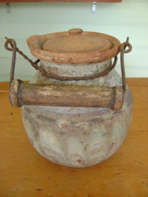 Title (ebay affiliate link): Antique 19thc Primitive old Red ware Redware Jug original paint wire handle AAFA