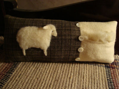 PRIMITIVE ~ OLD WOOL SHEEP PILLOW WITH POCKET