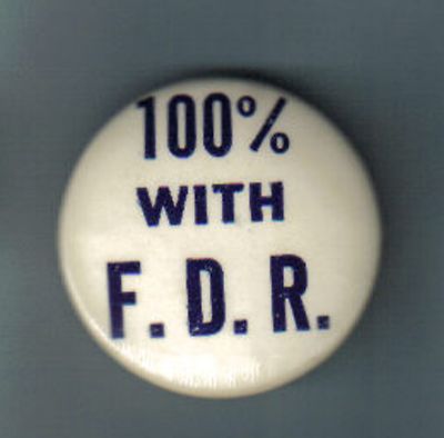 Title (ebay affiliate link): FDR ROOSEVELT Slogan "100% with FDR" Pin RARE 1.25 in