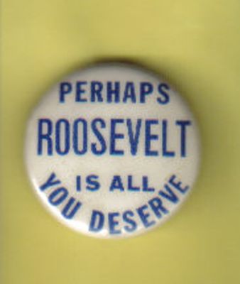 Title (ebay affiliate link): FDR ROOSEVELT Slogan PERHAPS ROOSEVELT IS ALL YOU DESERVE 1940 WILLKIE
