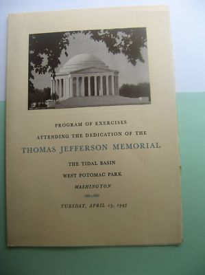 Title (ebay affiliate link): Rare Official Program for the Dedication of the Jefferson Memorial 1943