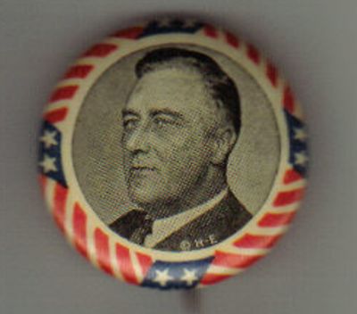 Title (ebay affiliate link): FDR ROOSEVELT 1.25 in. pin Stars Stripes border CLASSIC