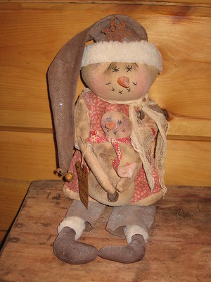 Title (ebay affiliate link): PRiMiTiVe OLDe SNOWMAN DOLL and SNOW BABY ViNTaGe ReD QuiLT DReSS CuPBoaRD TuCK