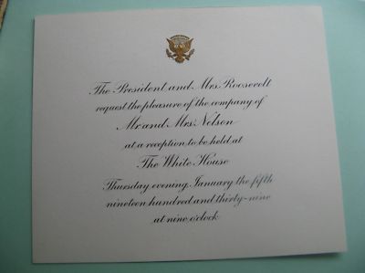 Title (ebay affiliate link): President Franklin Roosevelt 1939 White House Invitation 4pc.