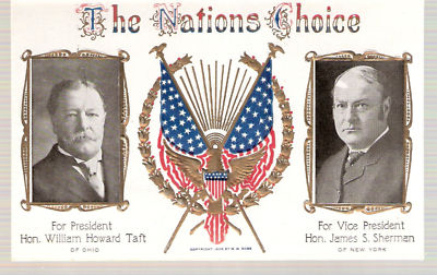 Title (ebay affiliate link): 1908 Postcard of President Taft and VP Sherman Jugate