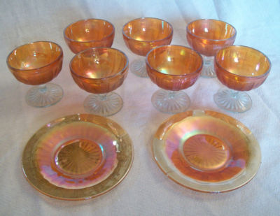 Title (ebay affiliate link): Lot of 9 Amber Chipped Depression Glassware (sherbet, plates) for Crafts