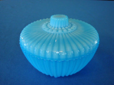 Vintage Blue Glass AKRO AGATE POWDER JAR PIN DISH Lidded Bowl