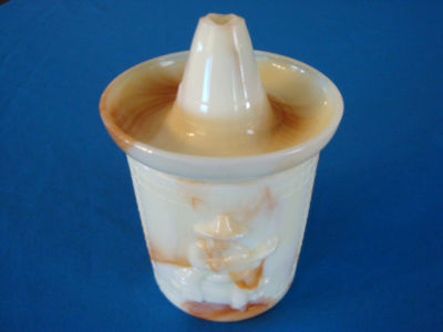 Title (ebay affiliate link): Vintage Mexicali Glass AKRO AGATE POWDER JAR Cactus Guitar Design Sombero Lid