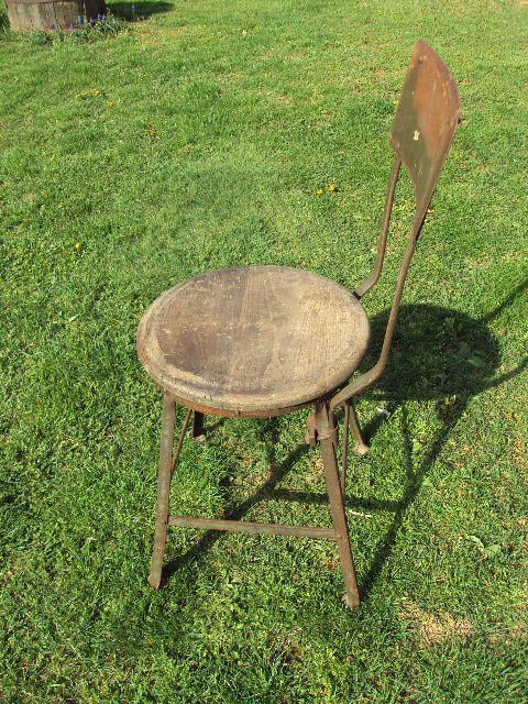 Title (ebay affiliate link): VINTAGE MACHINE AGE INDUSTRIAL CHAIR ANGLE STEEL STOOL