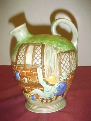 ANTIQUE ENGLISH ROUND PITCHER WITH RAISED TAVERN FIGURES
