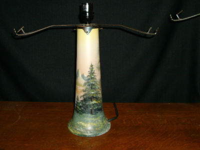 VINTAGE ART GLASS TABLE LAMP BASE PAINTED WOODLAND SCENE FABULOUS