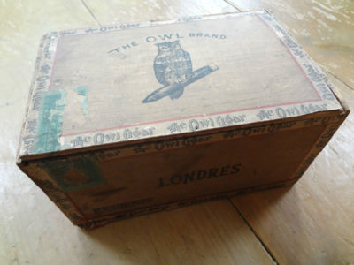 ANTIQUE WOODEN WHITE OWL CIGAR BOX - NICE ADVERTISING!