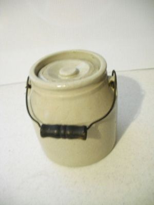 ANTIQUE STONEWARE POTTERY CANNING CROCK W/ LID BALE WIRE HANDLE