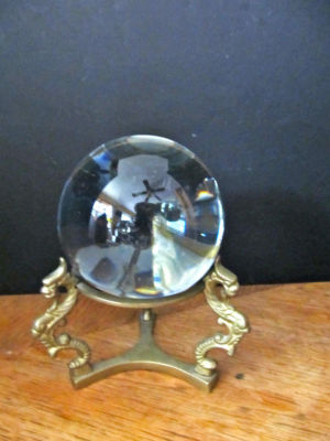 ANTIQUE ESTATE FIND CLEAR XL.CRYSTAL BALL WITH STAND BIG!