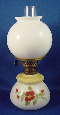 Title (ebay affiliate link): Antq Miniature Gone With the Wind GWTW Milk Glass Oil Lamp P & A Burner NR