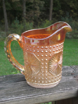 Title (ebay affiliate link): Vintage Marigold Carnival Glass Milk Pitcher Star Medallion