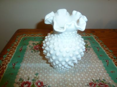 Vintage Hobnail Fluted Milk Glass Opaque Vase