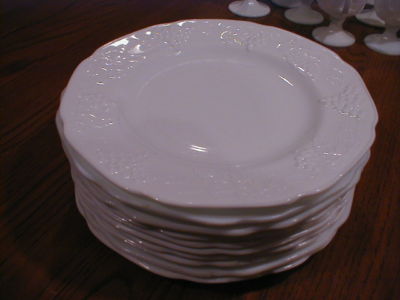 Title (ebay affiliate link): 10 Westmoreland Antique Milk Glass Paneled Grape Vine Leaf 10 inch Plates
