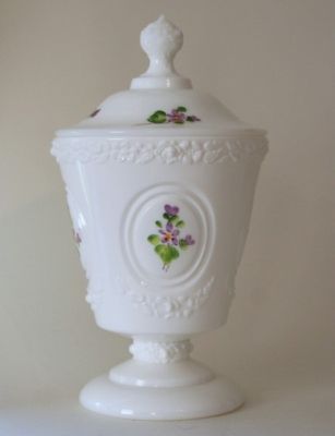 Title (ebay affiliate link): Vintage Fenton Hand Painted Floral White Milk Glass Covered Jar - Signed Curry