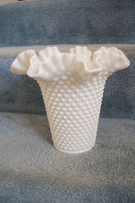 Title (ebay affiliate link): Large Fenton Milk Glass Hobail Double Crimped Vase 8.25" by 9"