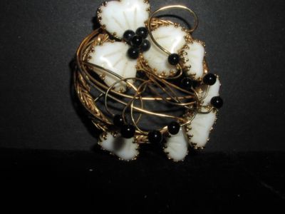 Title (ebay affiliate link): Vintage Signed Hobe Pin White Milk Glass Black With Gold Tone Metal Stylized