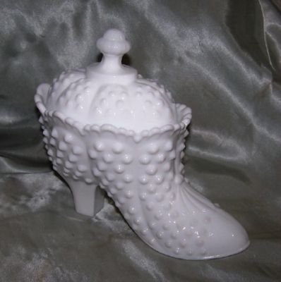 Fenton Milk Glass Hobnail Shoe/Slipper Covered Candy Dish