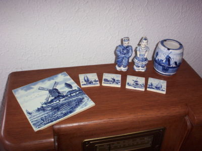 Lot of Delft Blue and white Two in. Tiles Salt & Pepper shakers Ash Tray 6" TILE