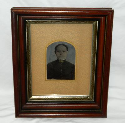 Antique 1880 VICTORIAN Walnut SHADOW BOX Frame LADY Tintype