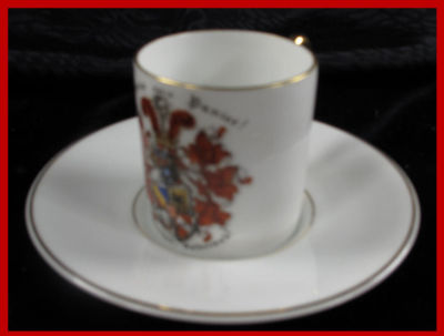 ANTIQUE 1910 Cup & Saucer Hand Painted CREST Coat of Arms Crested China Enamel