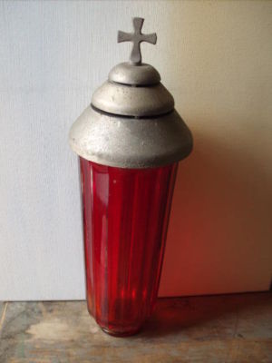 Antique Ruby Red Glass CHUCH ALTER CANDLE SCONCE With Cross Top
