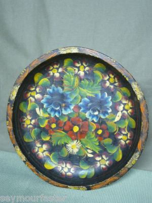 Title (ebay affiliate link): Vtg Mexican Folk Art Wood BATEA Bowl Tray Hand Painted Floral Tole Carved