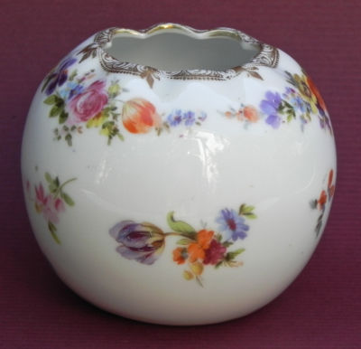 Lovely Floral Gilt Hand Painted White Porcelain Rose Bowl