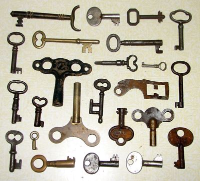 Title (ebay affiliate link): Vtg Antique Brass Steel Lot Barrel Lock 24 Skeleton Keys Furniture Cabinet Clock