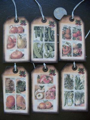 Title (ebay affiliate link): garden PRIMITIVE TAGS vegetables SCRAPBOOK craft tag GRUBBY prim tag MAKE-DO