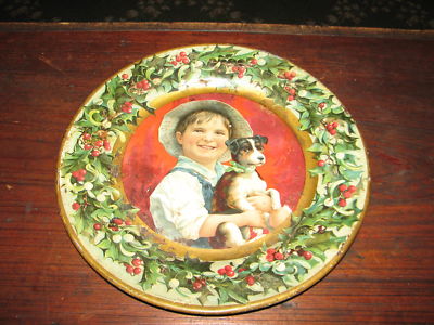 Title (ebay affiliate link): Early 40"s-50"s Christmas Metal Plate w/Boy & His Dog