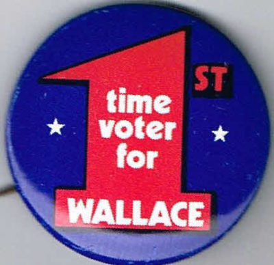 1ST TIME VOTER FOR GEORGE WALLACE PIN, PINBACK BUTTON #187