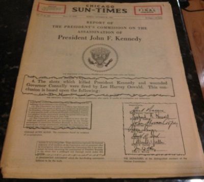 Title (ebay affiliate link): Chicago Sun-Times Newspaper September 28, 1964 THE WARREN COMMISION JFK