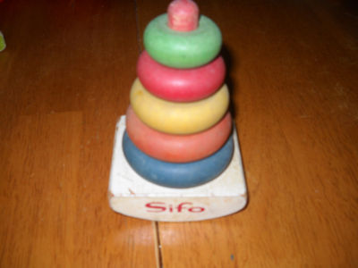 Title (ebay affiliate link): Vintage Wooden SIFO colored Stackable Rings old toddler toy very cool!