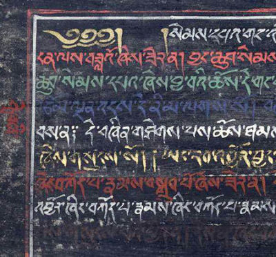 Title (ebay affiliate link): 2 ILLUMINATED MANUSCRIPT TIBETAN LEAVES c1700s MULTI-COLORED INK ON BLACK PAPER