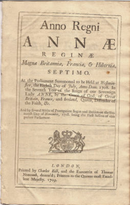 Title (ebay affiliate link): 1708 Act of Parliament- Queen Anne - One Month's Pay for Raising the Militia